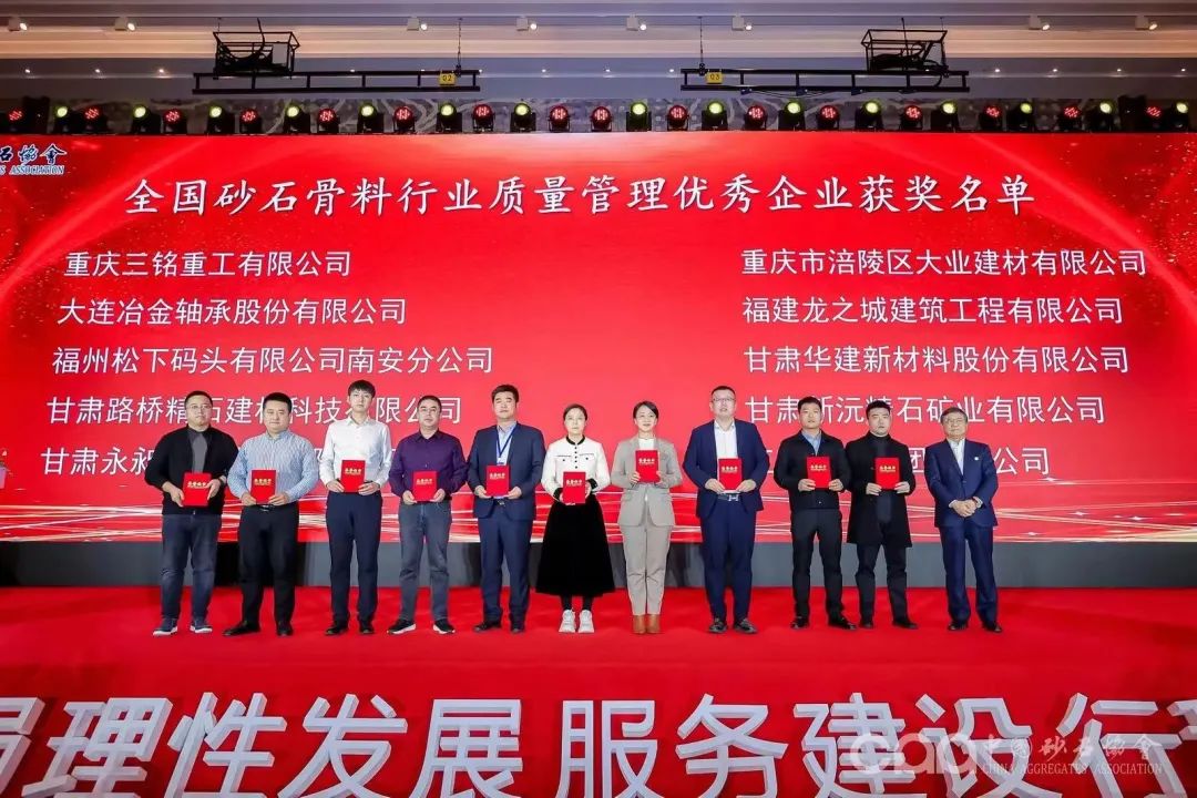 值得一提的是,三銘重工在全國砂石骨料行業(yè)評選中,榮獲“優(yōu)秀企業(yè)”,“創(chuàng)新企業(yè)”,“質(zhì)量管理優(yōu)秀企業(yè)”“企業(yè)文化建設(shè)先進單位”,“專業(yè)運營服務(wù)商”;“優(yōu)秀設(shè)備供應(yīng)商”的稱號;董事長龍福建獲得“突出貢獻獎”的稱號,總經(jīng)理龍涵李玨獲得“優(yōu)秀工作者”、“砂石工匠”的稱號,副總經(jīng)理、技術(shù)中心總工萬灃獲得“優(yōu)秀工程師”的稱號。