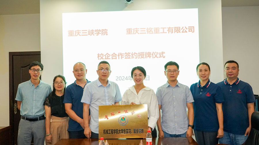 為進一步加強校企深度合作,推進職業(yè)教育與地方產業(yè)的高質量發(fā)展,202473日,重慶三銘重工與重慶三峽學院校企合作簽約授牌儀成功舉行。
