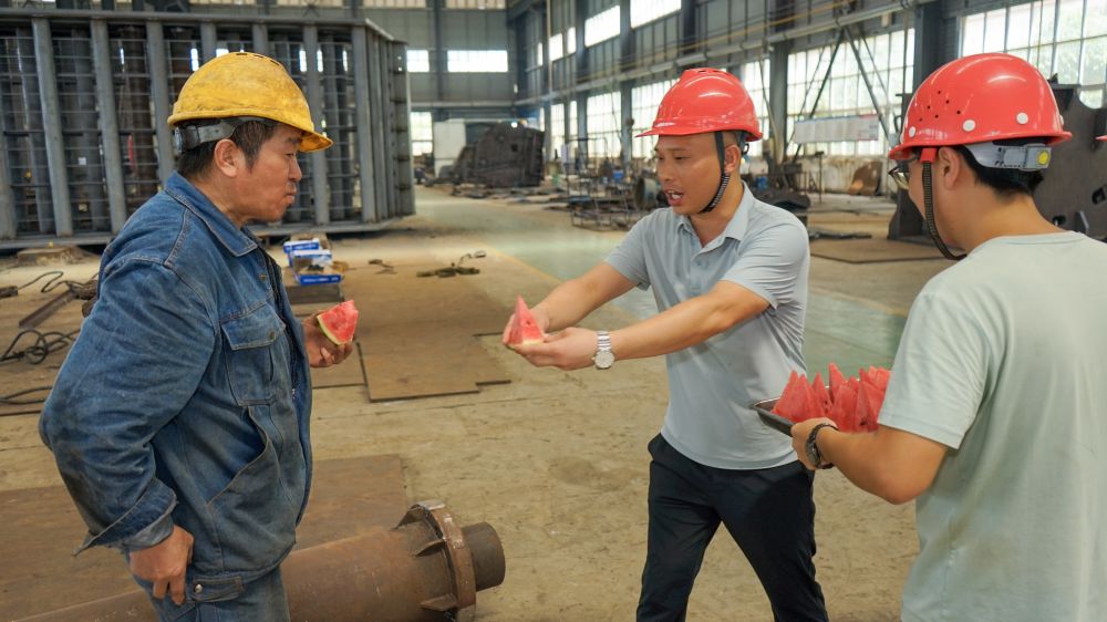 這不僅是一場簡單的物資贈送,更是三銘重工企業(yè)文化與人文關(guān)懷的深刻體現(xiàn)。在酷暑難耐的季節(jié)里,重慶龍建集團(tuán)董事長、重慶三銘重工總經(jīng)理及重慶三銘重工工會主席、黨支部書記等一行人親自深入基層,以實(shí)際行動詮釋了“以人為本”的管理理念,為在高溫下默默奉獻(xiàn)的員工送去了最及時(shí)、最貼心的關(guān)懷。