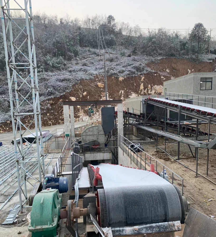 To achieve efficient synergy between resource recycling and engineering construction, the gravel yard project for Hefeng Station in the Hubei section of the newly-built Yichang-Fuling High-Speed Railway is being constructed as scheduled. The complete set of equipment for this gravel yard is provided by Chongqing Sanming Heavy Industry, designed to meet high standards of economic efficiency, environmental protection, energy conservation, high efficiency, intelligence, and safety. The coarse crushing process adopts a semi-submerged design, utilizing natural terrain to reduce footprint and rationally arrange the production line.