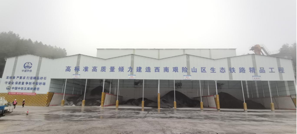 To achieve efficient synergy between resource recycling and engineering construction, the gravel yard project for Hefeng Station in the Hubei section of the newly-built Yichang-Fuling High-Speed Railway is being constructed as scheduled. The complete set of equipment for this gravel yard is provided by Chongqing Sanming Heavy Industry, designed to meet high standards of economic efficiency, environmental protection, energy conservation, high efficiency, intelligence, and safety. The coarse crushing process adopts a semi-submerged design, utilizing natural terrain to reduce footprint and rationally arrange the production line.